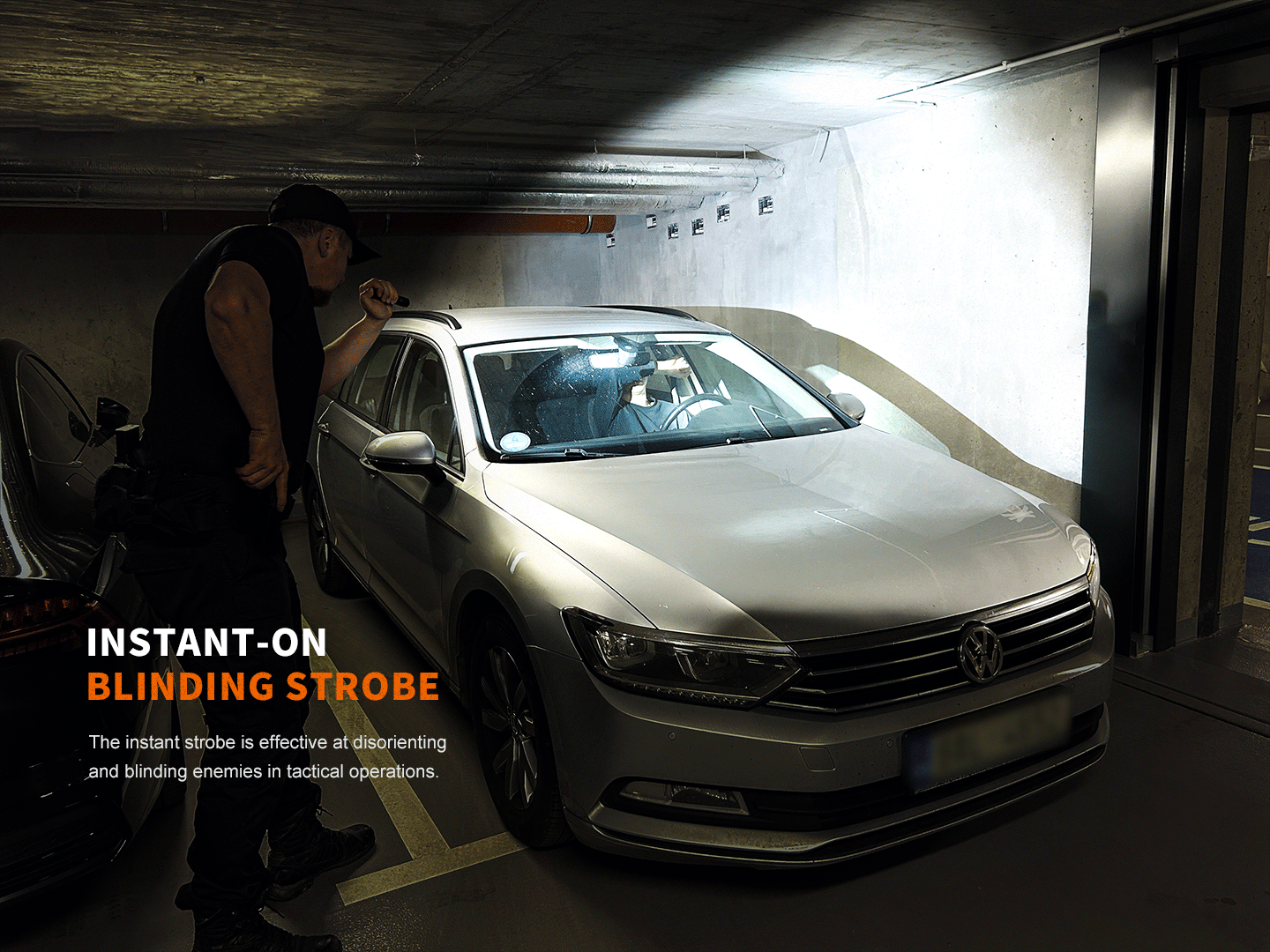 Fenix PD32R Flashlight flashing to incapacitate a criminal