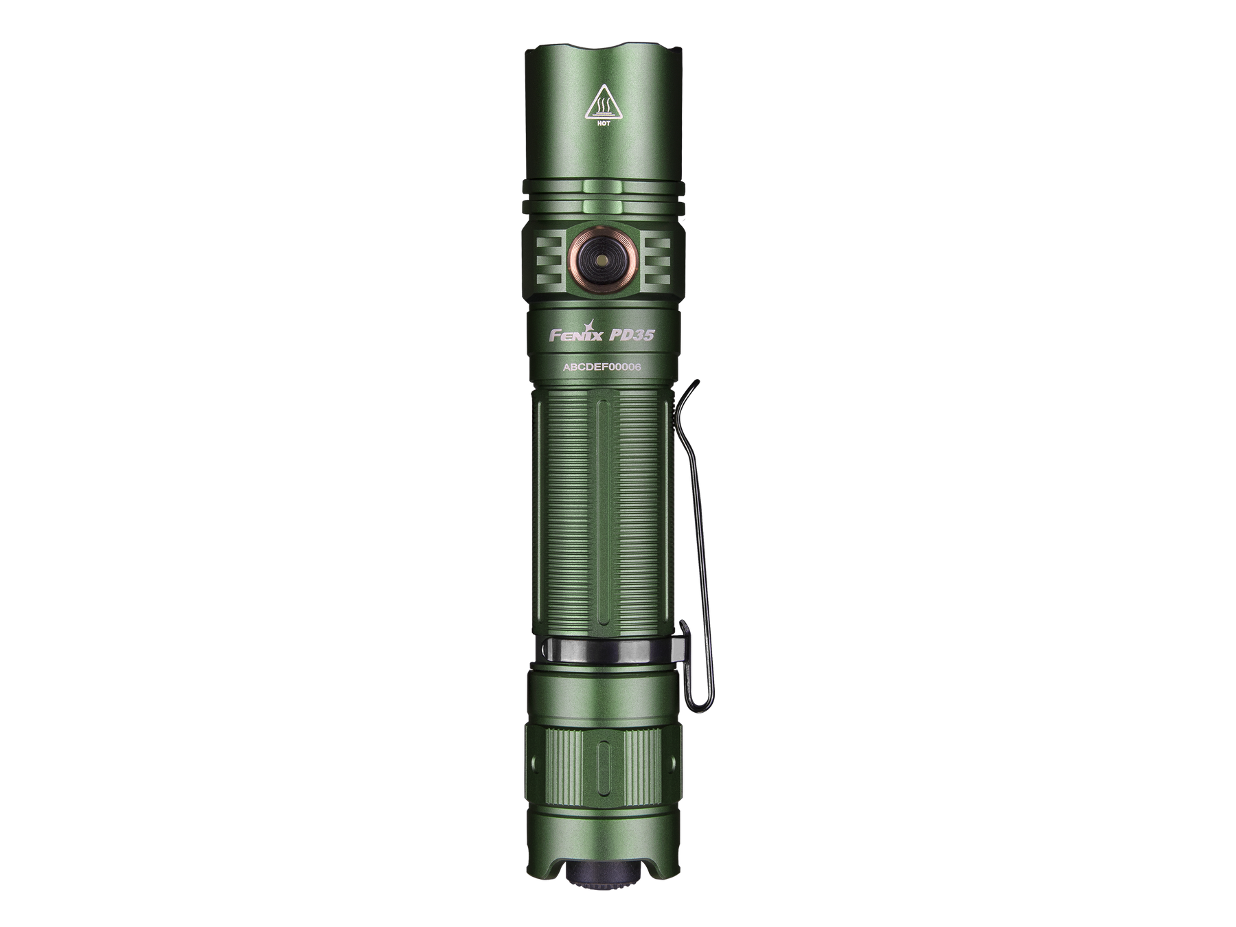 Fenix PD35 V3 flashlight viewed from the front